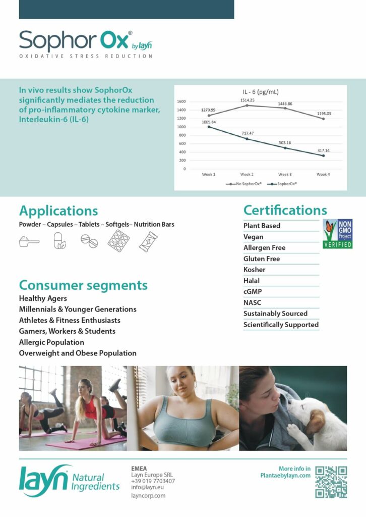 SophorOx scientifically proven to inhibit pro-inflammatory compounds and reactive molecules that cause oxidative stress and to provide a healthy inflammation response.